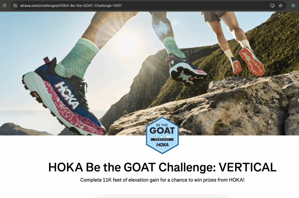 Hoka’s recent “Be the GOAT Challenge: Vertical” stood out for me: